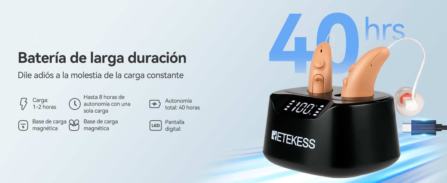 ④ Las baterías recargables son una gran ventaja; puedo usarlas todo el día y cargarlas fácilmente durante la noche. El estuche de carga es portátil y práctico, lo que me permite cargar mis audífonos en cualquier momento y lugar. Estos audífonos son perfectos para personas mayores o para cualquiera que busque una solución eficaz y fácil de usar.