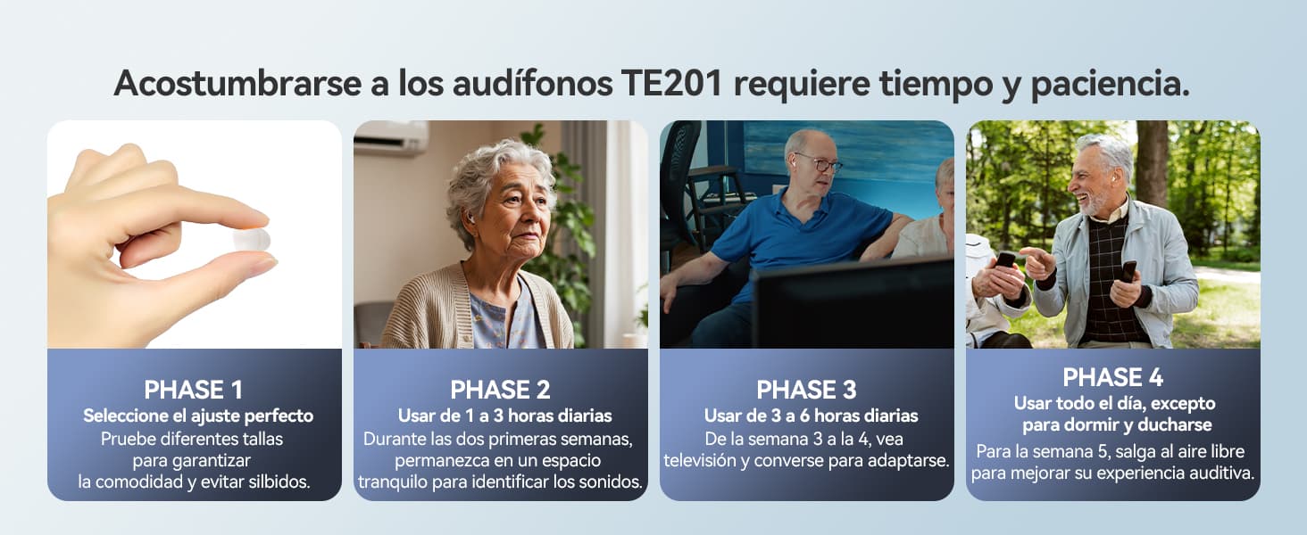 ③ Compré estos audífonos para mi abuelo. Su audición ya no es tan buena como antes y a menudo tiene que ver la televisión a todo volumen. Estos audífonos funcionan de maravilla, son prácticamente invisibles, cómodos y no causan fatiga auditiva.