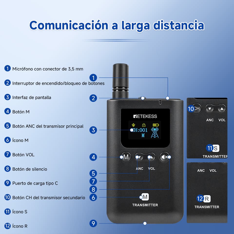 Retekess TT129 Transmisor S del Sistema de Comunicación Inalámbrico Full-duplex