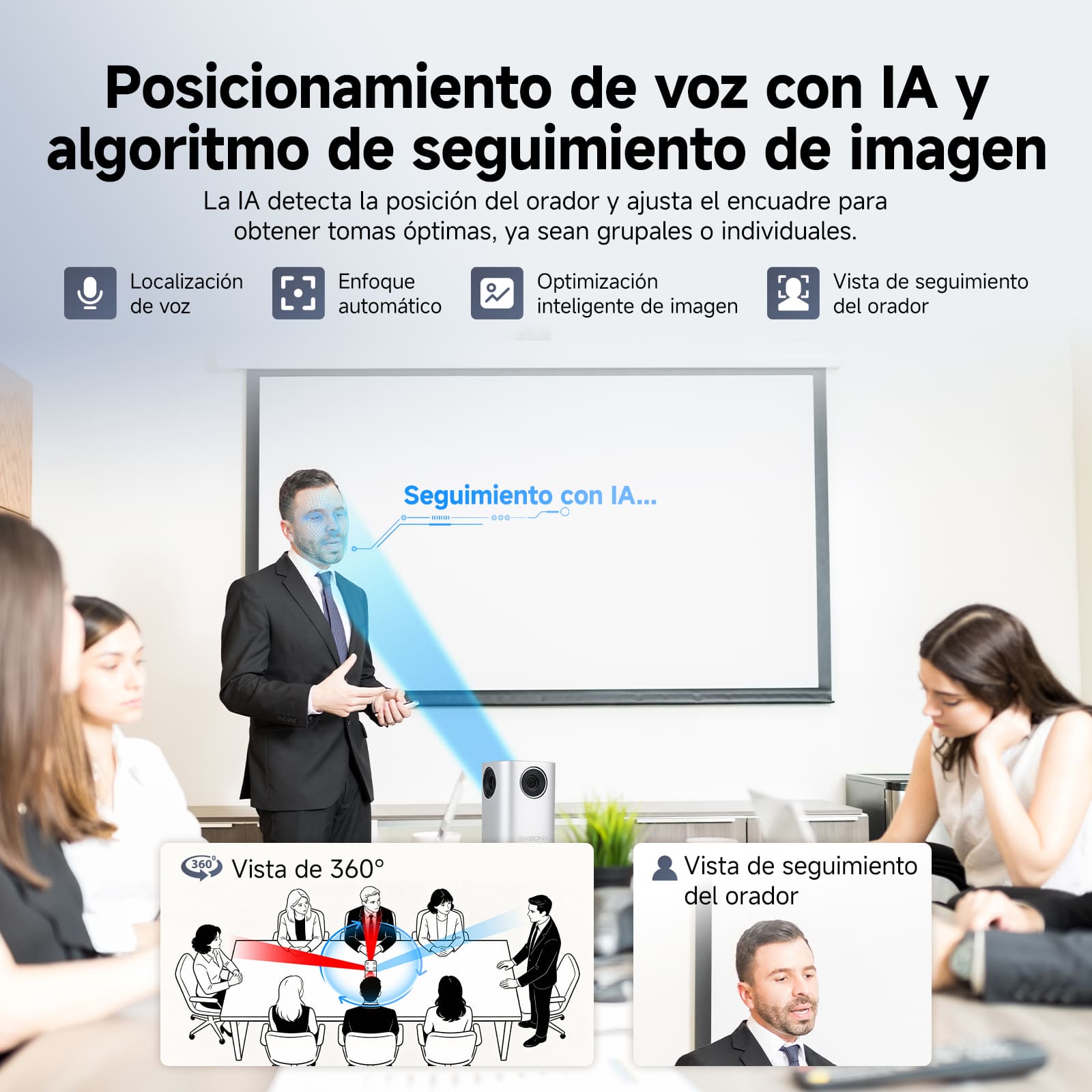 Posicionamiento de voz inteligente con IA y optimización de imagen inteligente