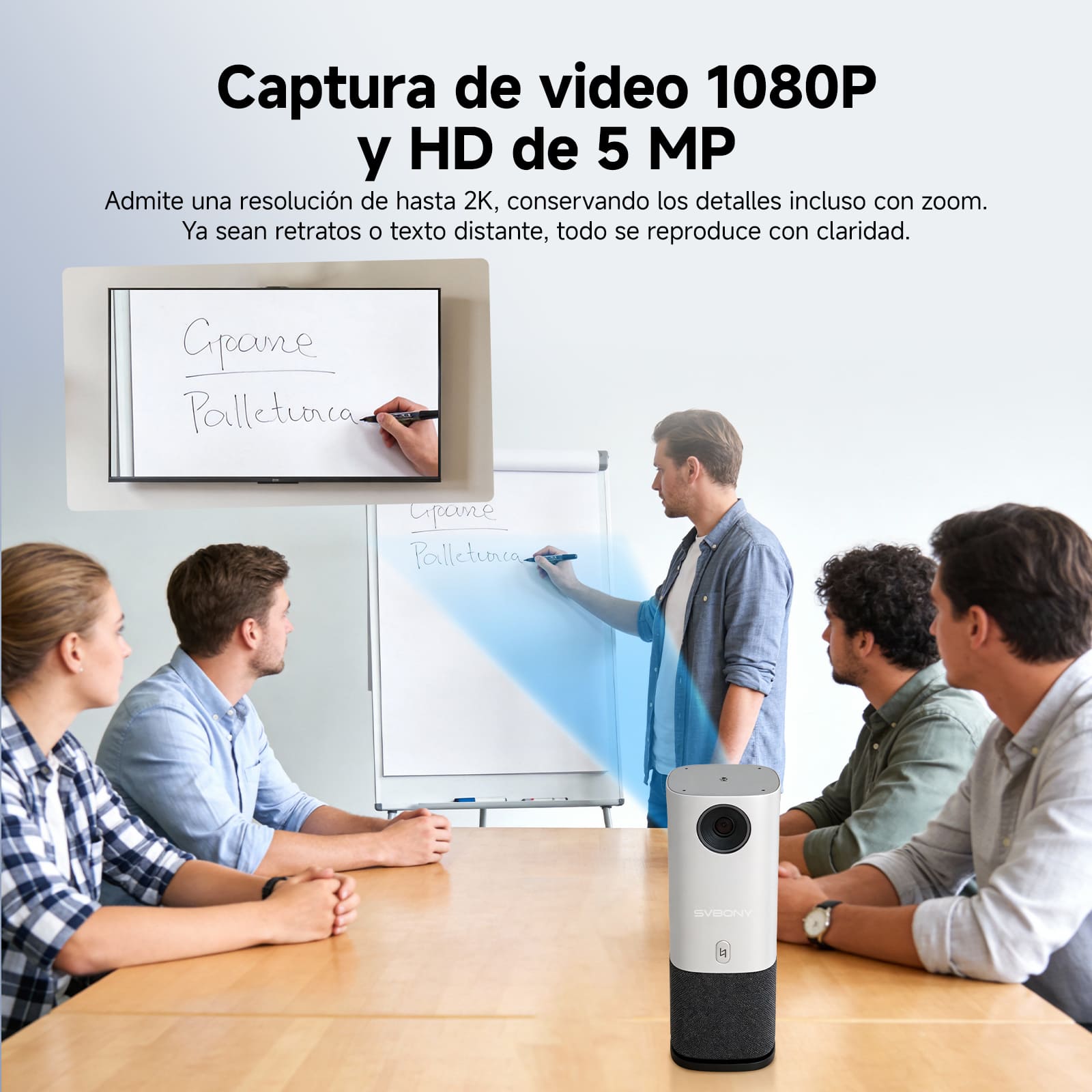 Cámara de alta definición de 5 MP: La cámara para salas de conferencias SVN A1 captura imágenes nítidas de 1080P, compatible con 5 MP y 2K opcional. El procesamiento inteligente de imágenes ofrece detalles exquisitos e imágenes equilibradas para una experiencia de reunión más atractiva.