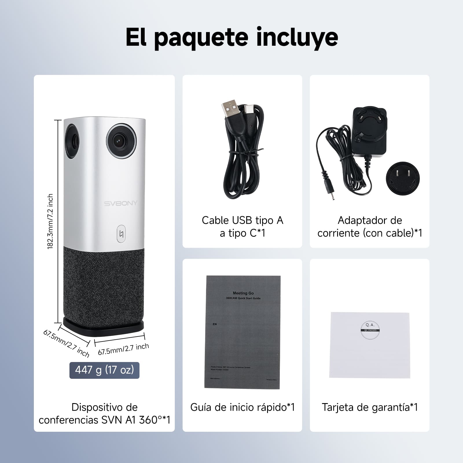 El sistema de conferencias todo en uno SVN A1 360° integra video HD, imágenes inteligentes multivista de 360°, seguimiento de oradores con IA y audio inmersivo en un dispositivo compacto. Con una cámara de 5 MP (hasta 2K), unión de cuatro lentes, un conjunto de micrófonos 4+1 con reducción de ruido, altavoces estéreo envolventes, control con un solo toque, gestión de aplicaciones y conexión USB plug-and-play, ofrece imágenes nítidas, sonido envolvente y una configuración sencilla para reuniones eficientes e inmersivas.