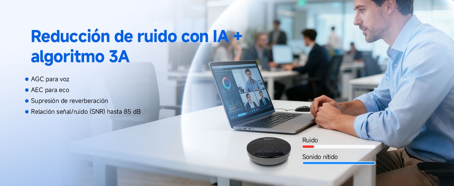 La tecnología de reducción de ruido con IA y nivel 3A ofrece una claridad de voz superior, eliminando eficazmente el ruido de fondo en las videollamadas, eliminando el eco, con control automático de ganancia y reducción de ruido de hasta 65 dB. El micrófono para videoconferencias SVN O1 garantiza que su equipo escuche cada palabra con claridad.
