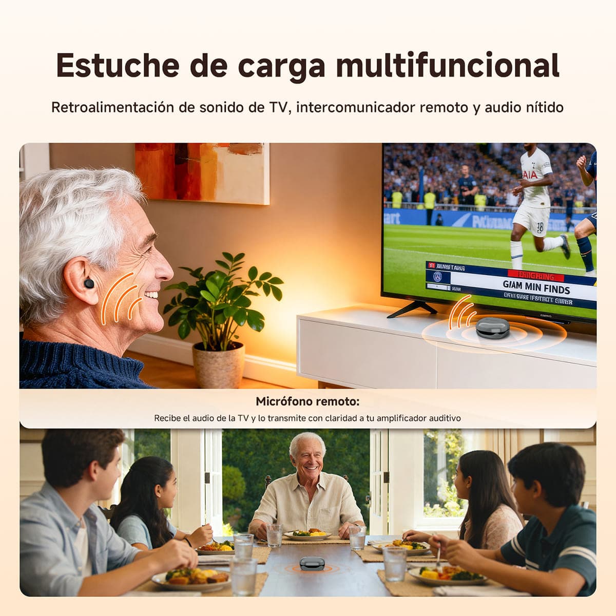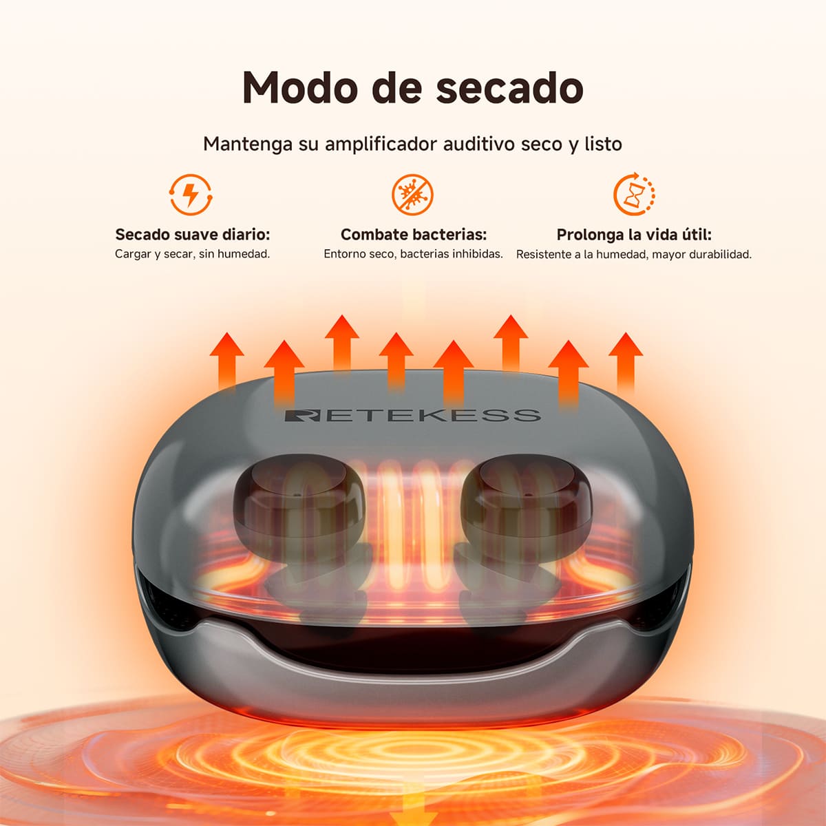 El estuche de carga multifuncional no solo carga y capta el sonido direccional, sino que también cuenta con una función de secado para el audífono, lo que prolonga su vida útil y proporciona una experiencia de usuario cómoda.