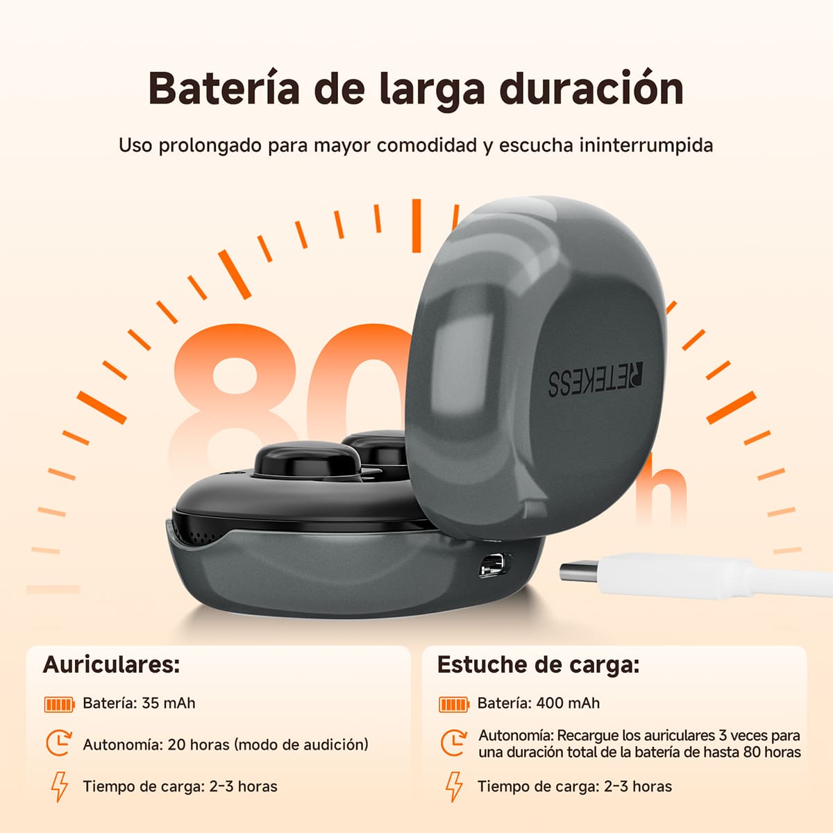 80 horas de duración de la batería