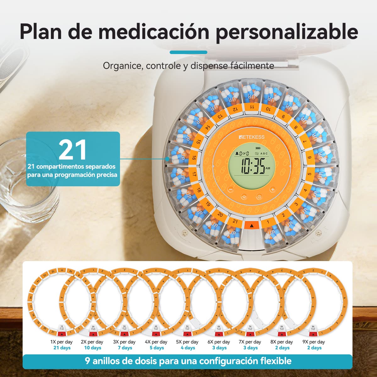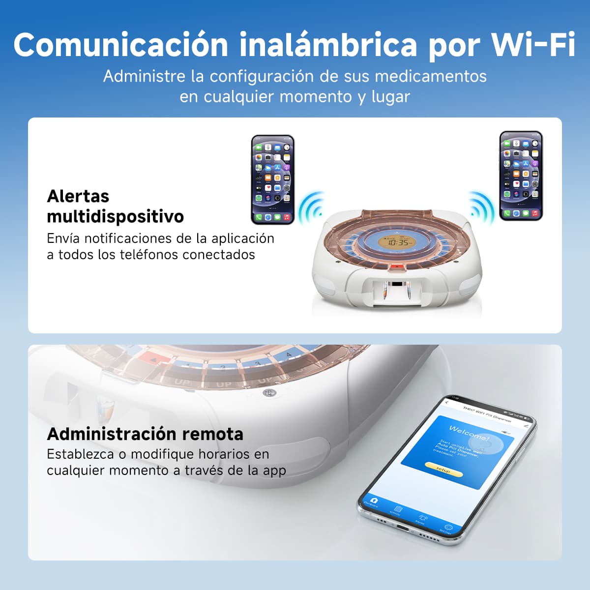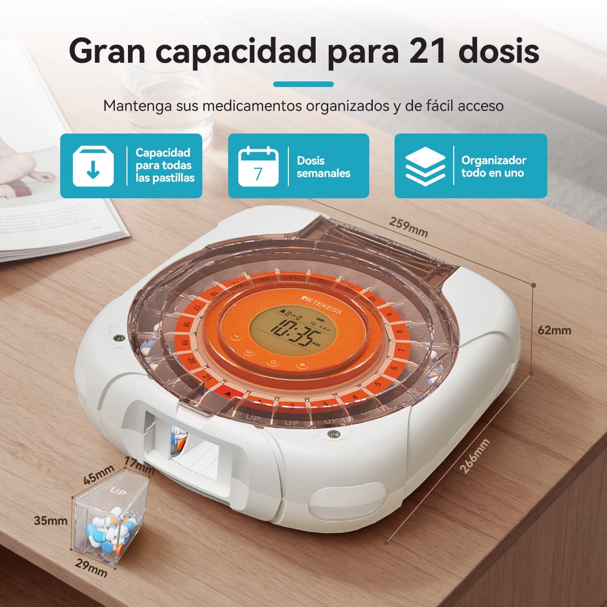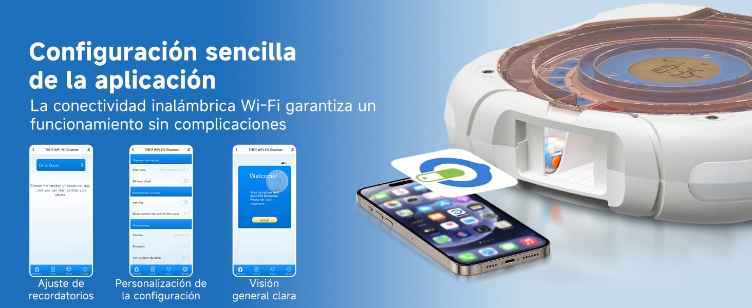 ¿Cansado de los complicados horarios de medicación y los frascos de pastillas desordenados? Nuestro pastillero inteligente es su aliado confiable para simplificar la vida y garantizar la precisión en la medicación. Con solo configuraciones sencillas, podrá disfrutar de una gestión de medicamentos sin preocupaciones.