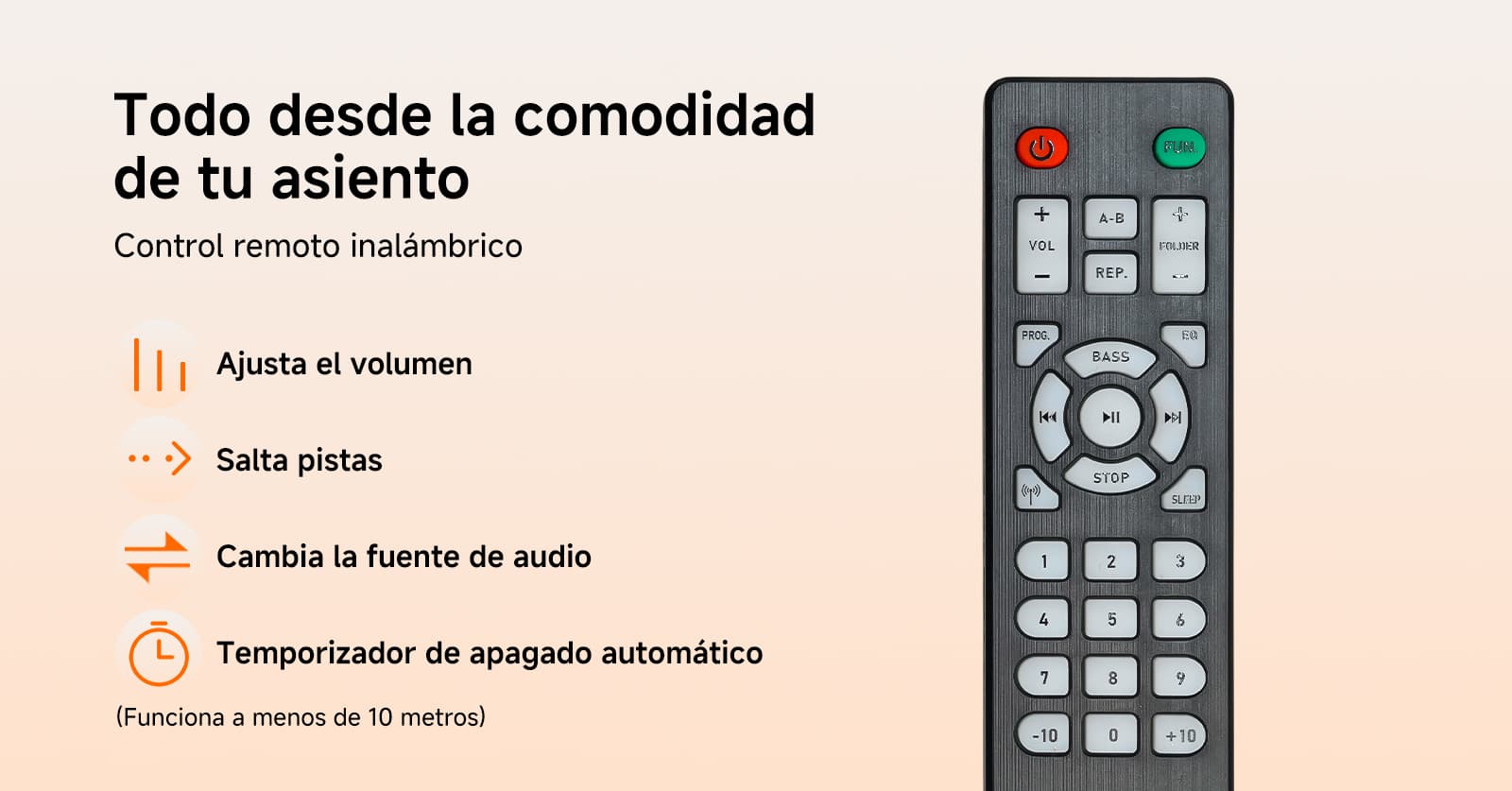 Función CD Profesional para una Escucha más Libre: Compatible con CD estándar y discos MP3. Reproduce automáticamente tras leer el disco y soporta modos de repetición de pista individual, repetición completa del disco y reproducción aleatoria. Ofrece reproducción programable (hasta 20 pistas para CD y 99 para MP3), permitiéndote personalizar tu orden de pistas exclusivo. Satisface las necesidades detalladas de los entusiastas de la música.