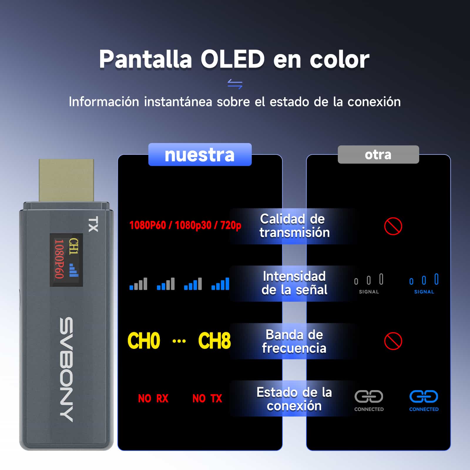 Este extensor HDMI inalámbrico cuenta con una carcasa metálica robusta y duradera, y un diseño elegante y compacto, lo que lo hace fácil de transportar y usar. Conéctese fácilmente con solo presionar un botón, lo que le permite disfrutar de una transmisión inalámbrica de alta calidad en cualquier momento y lugar.