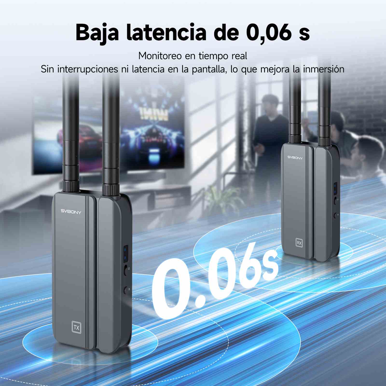 La resolución de alta definición combinada con una baja latencia de 0,06 segundos garantiza una sincronización perfecta con la reproducción. Ya sea en eventos deportivos o reuniones remotas, garantiza una experiencia de visualización y trabajo agradable, con imágenes sincronizadas de forma constante.