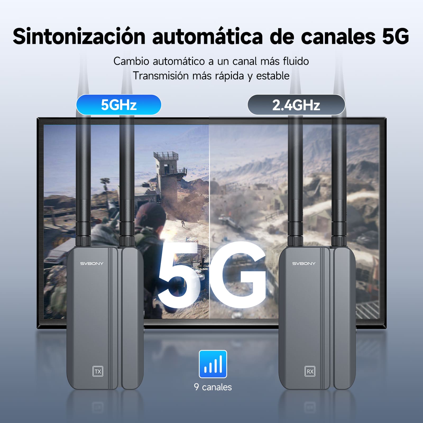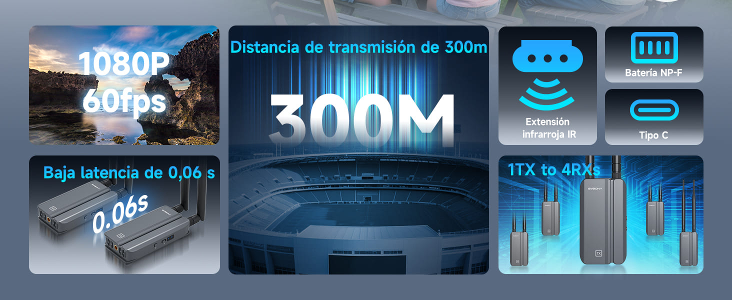 Esta serie de transmisores de video inalámbricos utiliza tecnología de salto de frecuencia automático 5G en la banda de 5 GHz, lo que proporciona una transmisión de datos más rápida y estable. Incluso en entornos WiFi congestionados, selecciona dinámicamente el canal óptimo para garantizar un rendimiento fluido.