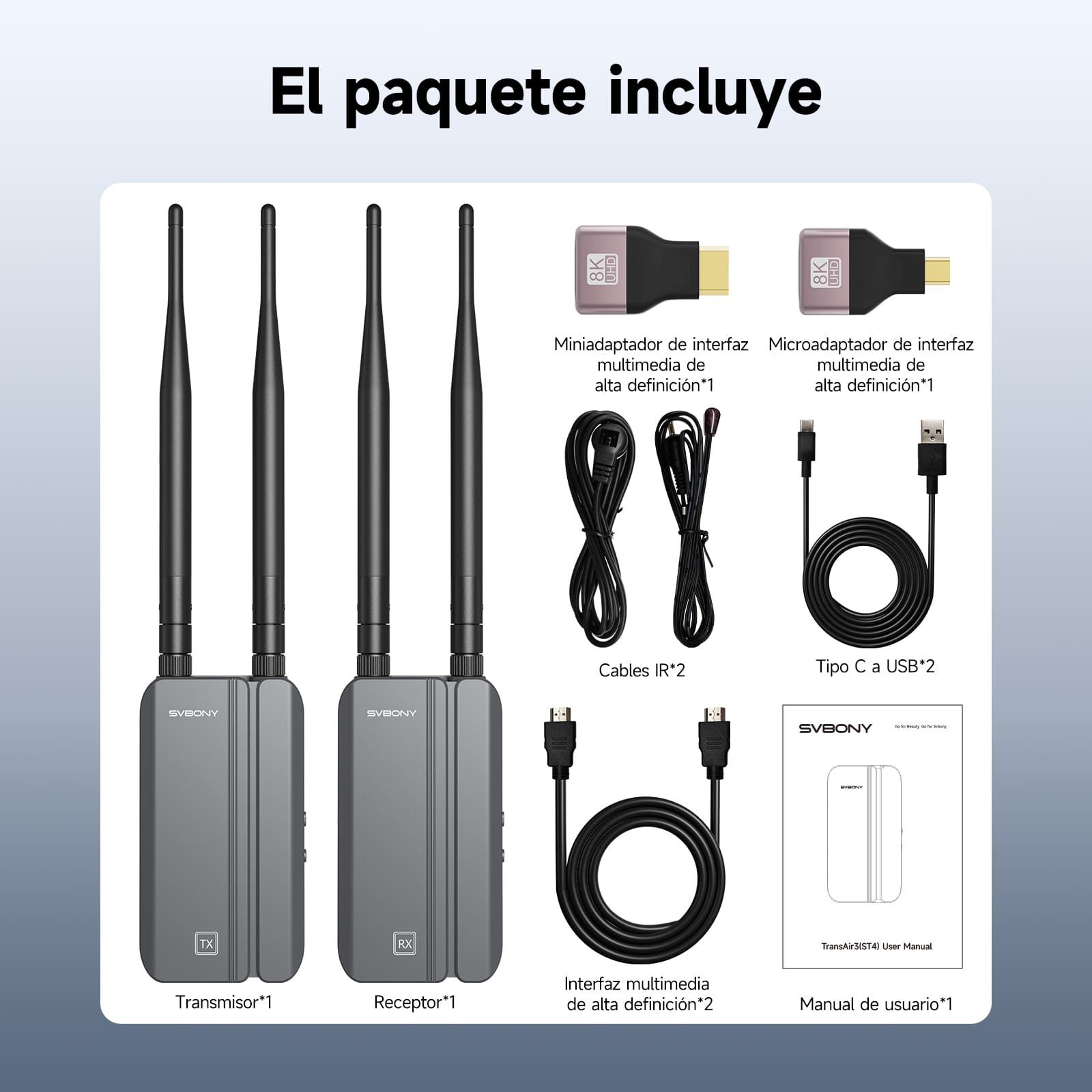 Lista de paquetes de la serie de transmisión de video inalámbrica TransAir3 (1 transmisor y 1 receptor)