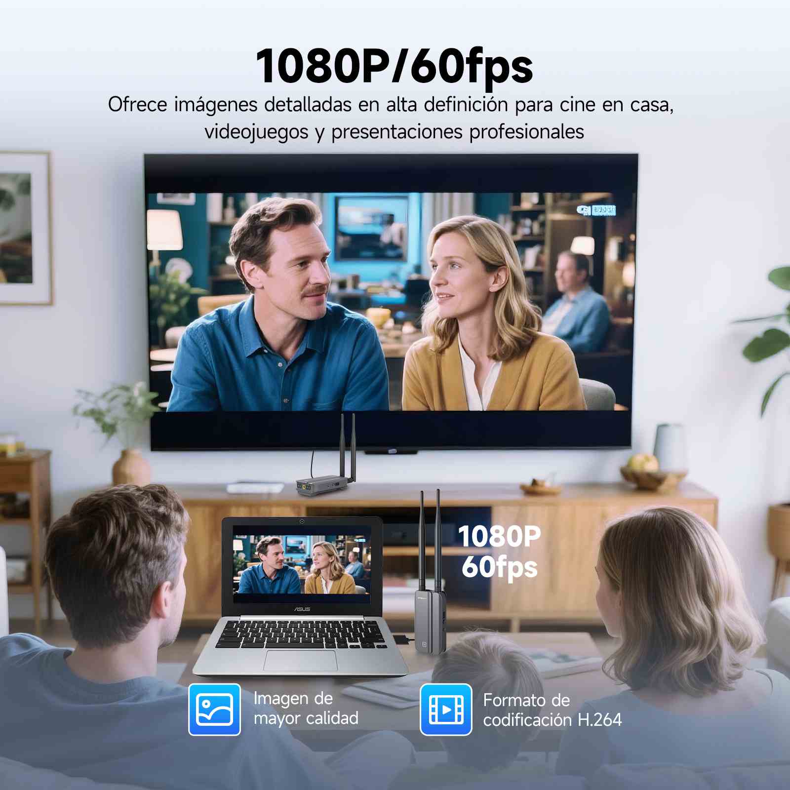 Con una resolución ultraalta de 1680p y una frecuencia de actualización de 60 fps a través de la tecnología HDMI inalámbrica, captura cada fotograma, ofreciendo imágenes nítidas y detalladas para videos de acción rápida, como transmisiones en vivo, presentaciones y juegos, eliminando la molestia de los cables enredados. El transmisor y receptor HDMI, equipados con la función de extensión de control remoto por infrarrojos, mantienen una transmisión de señal estable incluso en entornos con poca luz, a contraluz o de noche.